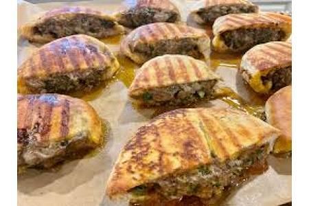 4 pita quarters filled with fine kebab, served with tahini and amba.