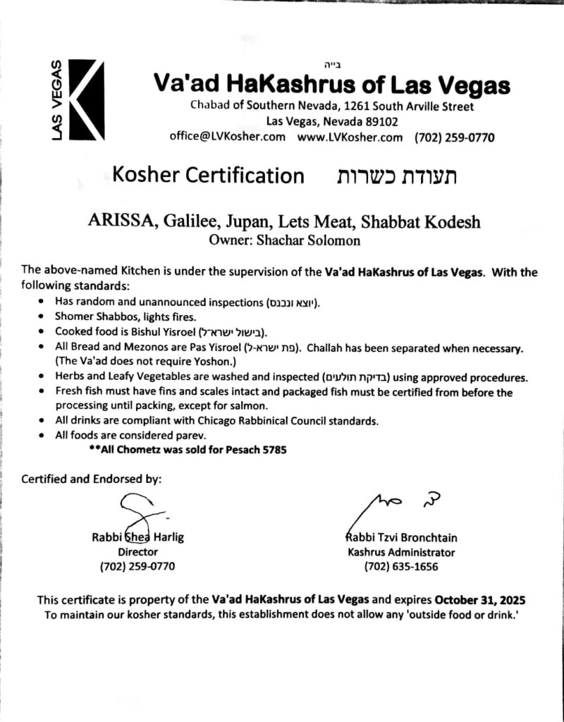 YES! We’re Certified by The Va’ad HaKashrus of Las Vegas, and have an On-Site Mashgiach.